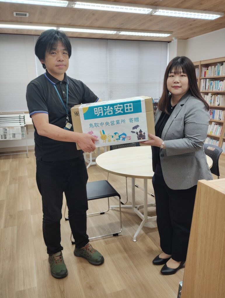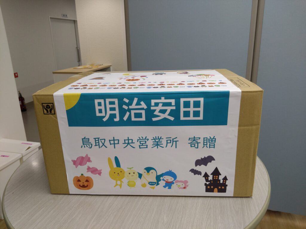 明治安田生命保険相互会社鳥取中央営業所様は、社内で地域食堂向けにフードドライブを実施され、集まった食品をご寄贈いただきました。